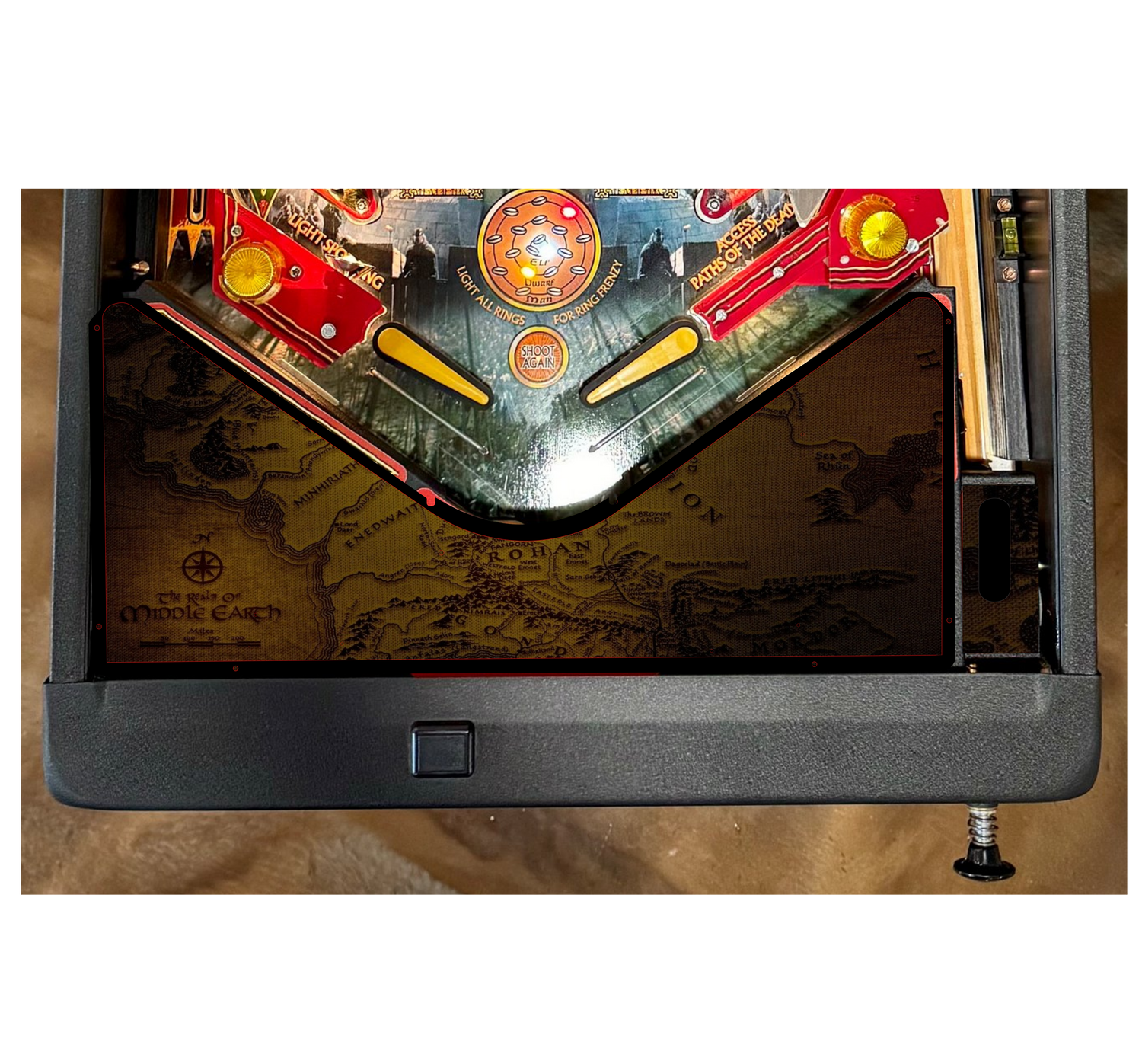 Elevate your pinball machine with the Lord of the Rings Pinball Lighted Apron, a striking replacement apron that lights up to bring this classic theme to life! This vivid, illuminated design includes a fully lit graphic, taking this area of your game up a notch. Crafted for durability and easy installation, the powder-coated metal apron is outfitted with an artwork plexiglass insert that can be swapped out with additional designs.