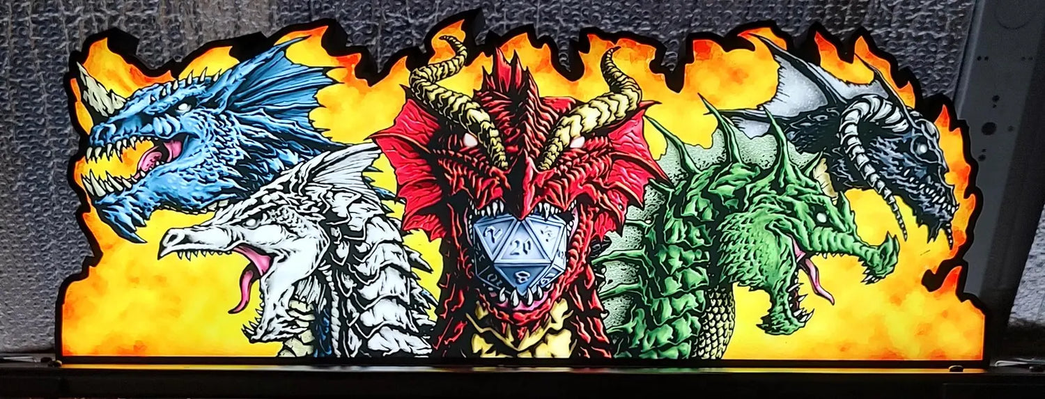 Upgrade your Dungeons & Dragons Tyrant’s Eye pinball machine with the TFKEnterprises Dragons Topper from Mezel Mods. Built from stainless steel and acrylic, this topper features custom UV-printed artwork illuminated with integrated LED lighting. Installation is quick and hassle-free with included instructions.