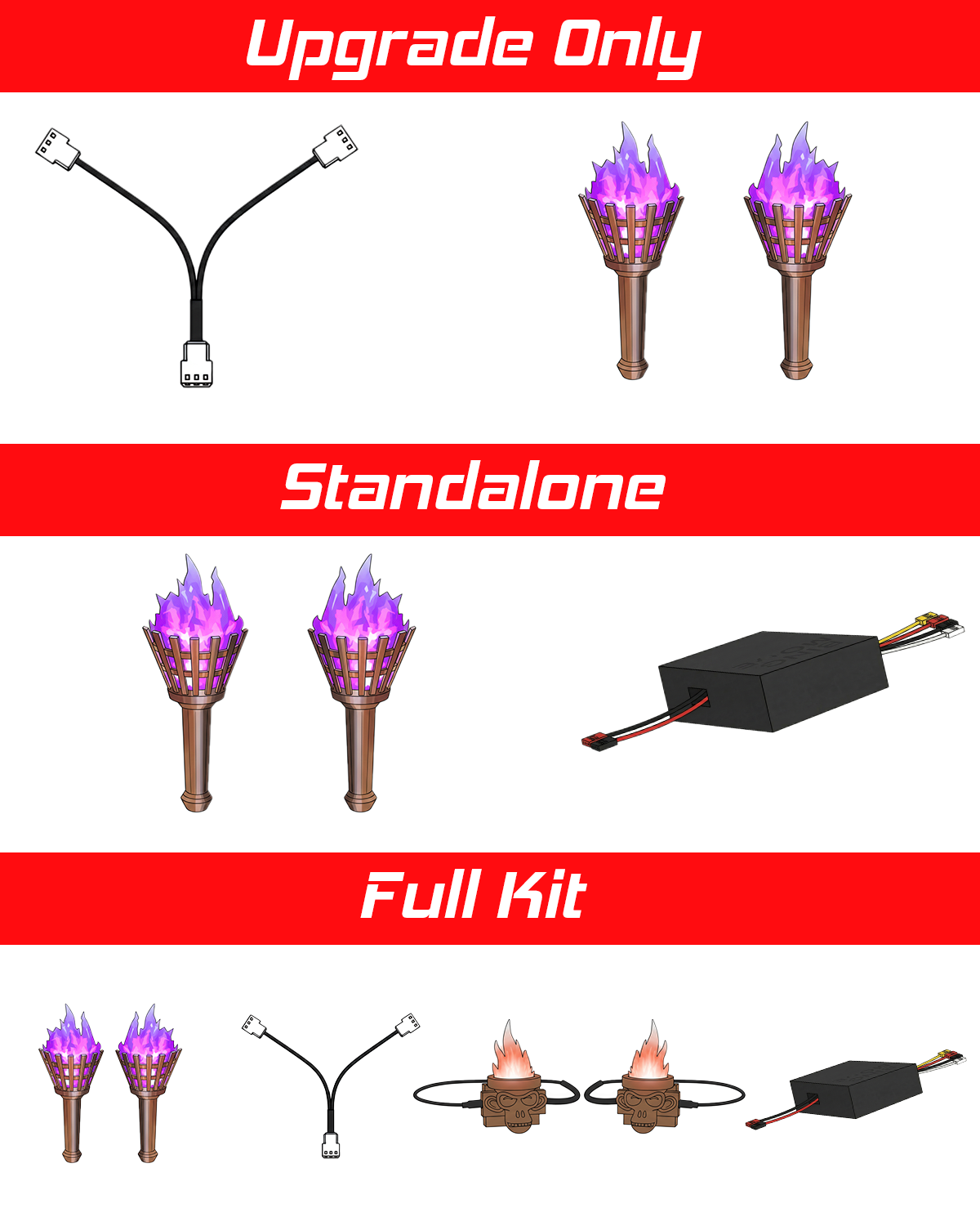 For customers who already own the Monkey Torches Standalone Kit. This option includes a pair of Gong Torches and everything needed to hook up to your existing setup.